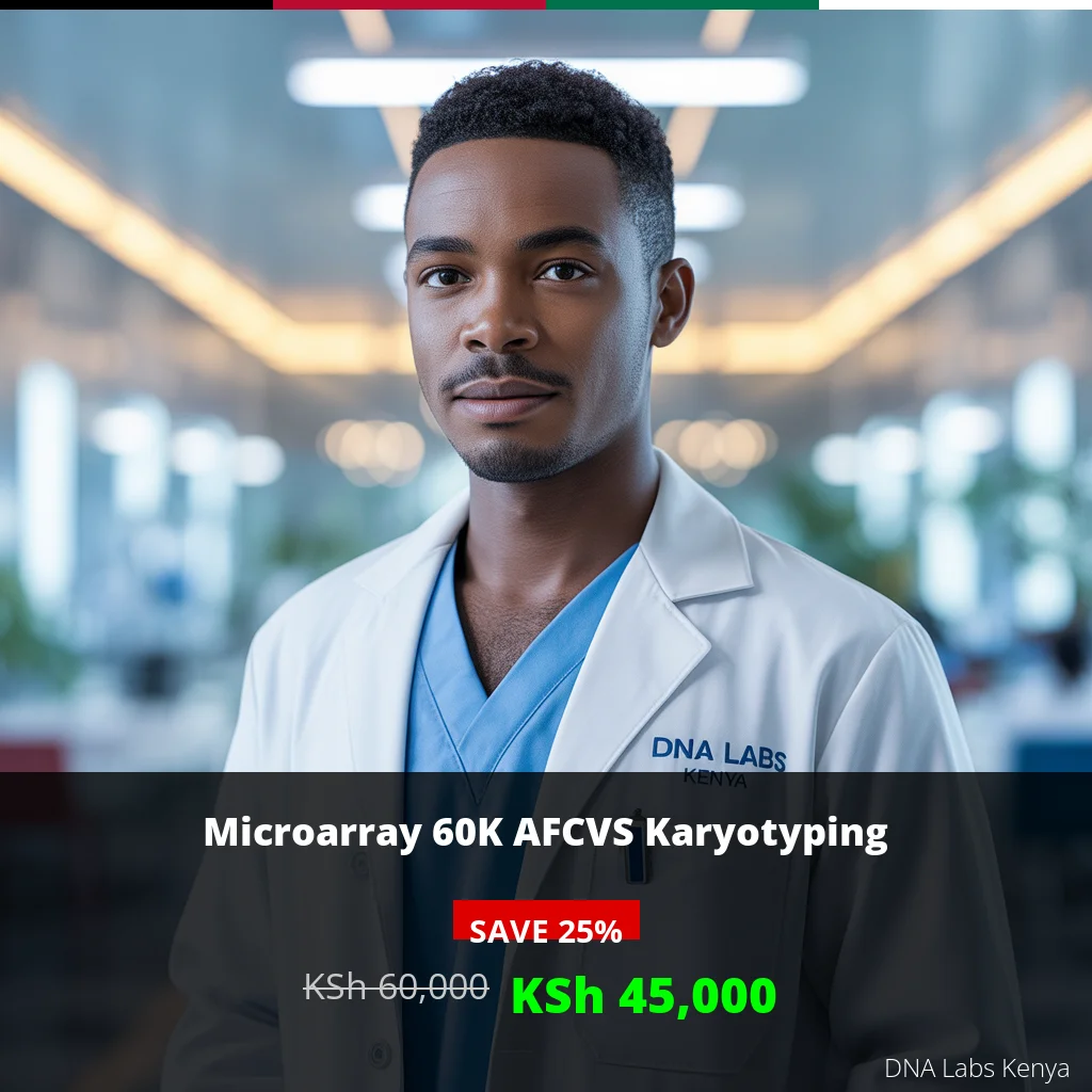 | Microarray 60K AFCVS Karyotyping | 45,000 KSh | 60,000 KSh |